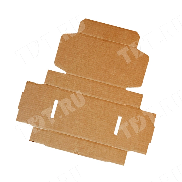 Короб КУ-11 бурый, длиной 220 мм, шириной 145 мм и высотой 50 мм. Изготовлен из трёхслойного картона Т-23 В. Полезный объём — 1.60 л.