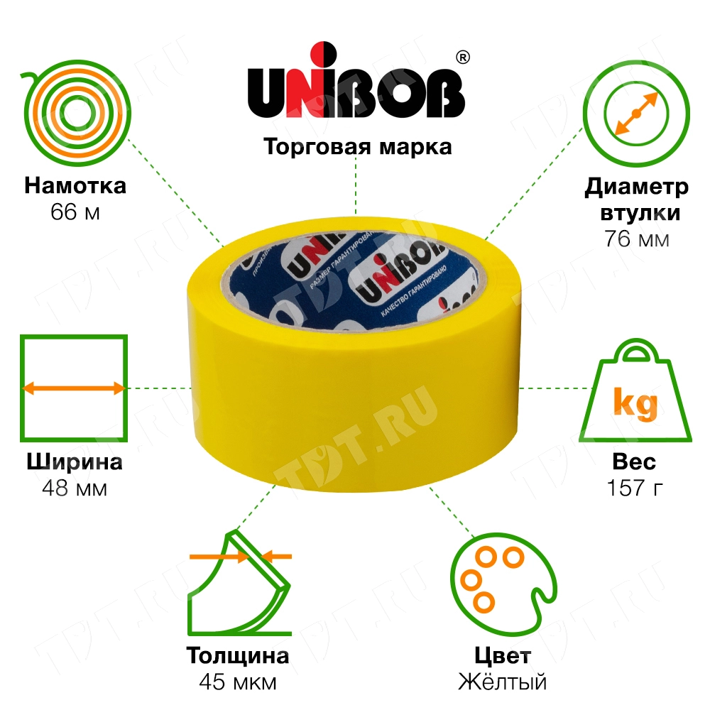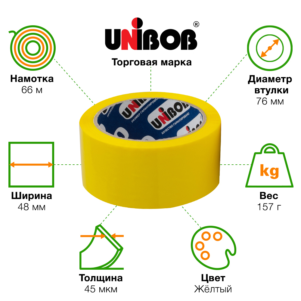 Клейкая лента желтая Unibob®, 48мм*66м*45мкм