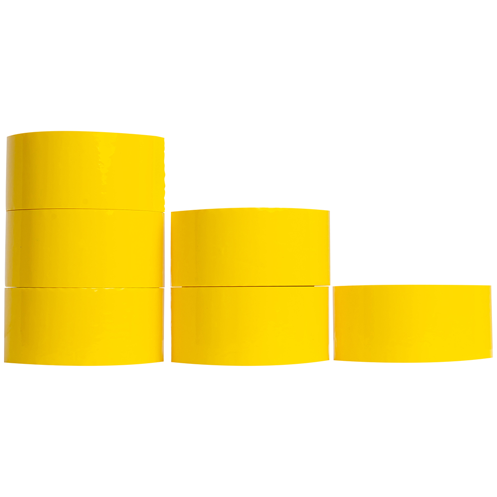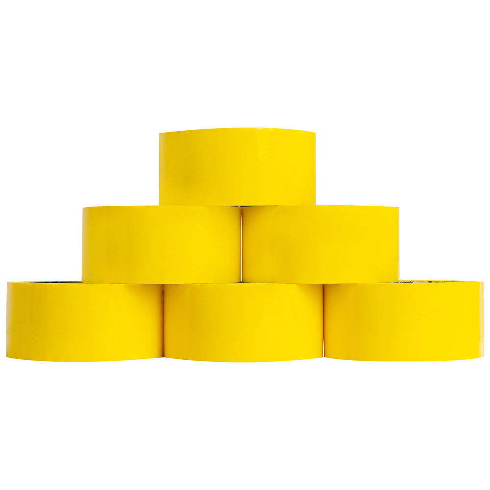 Желтая клейкая лента применяется для разметки пола и упаковки, она позволяет легко маркировать грузы, яркий цвет видно издалека, это дает понимание, где какие коробки лежат.