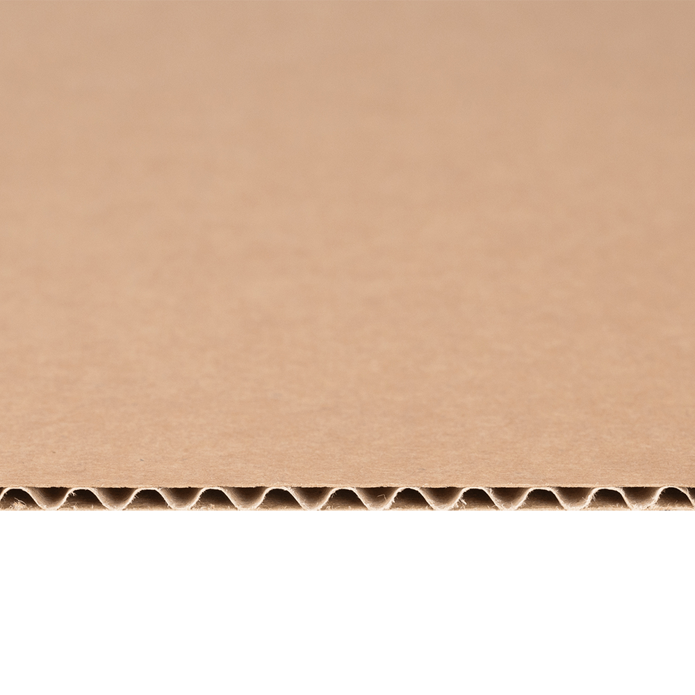 Трехслойный лист гофрокартона, бурого цвета, марки Т-24 В, длиной 2500 мм, шириной 1250 мм, толщиной 2.5-3.2 мм, площадью 3.125 м², направление волны вдоль стороны 1250 мм. Для производства листов используется только первичное высококачественное сырье. Производится в России.