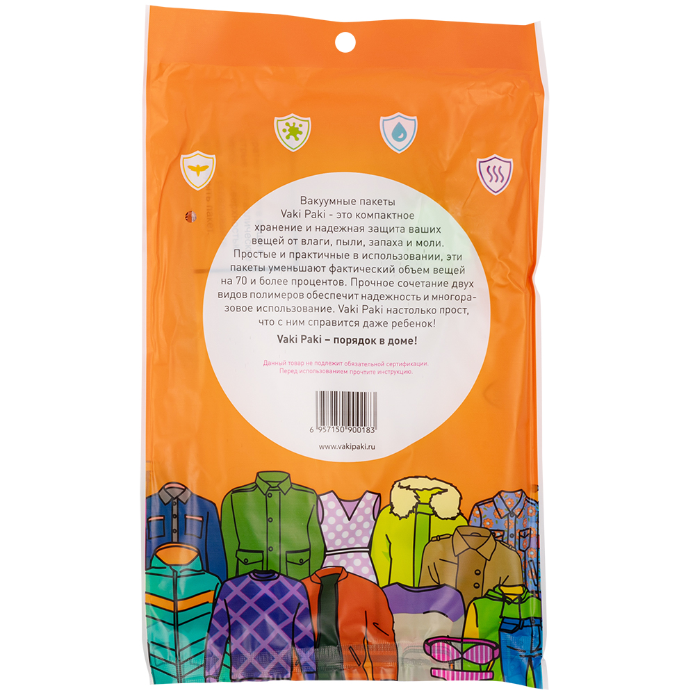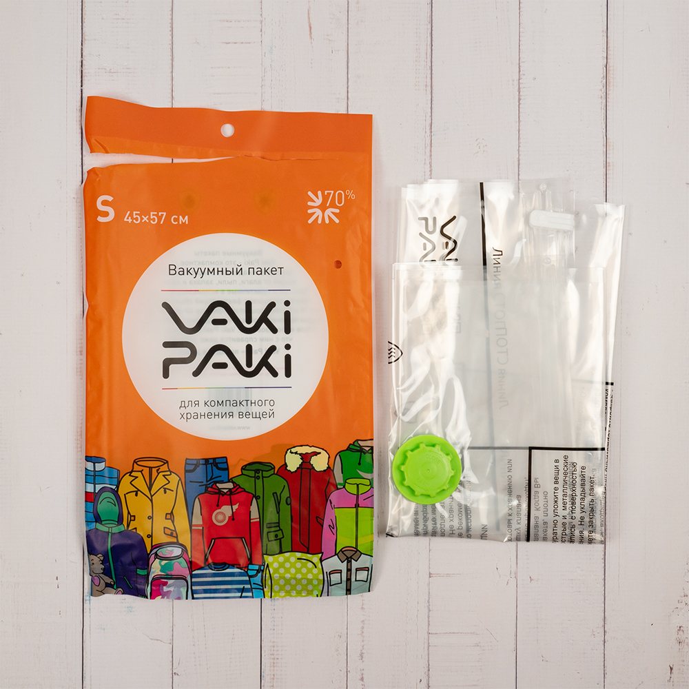 Вакуумный пакет для компактного хранения вещей S, прозрачного цвета, длиной 57 см, шириной 45 см, толщиной 80 мкм, в упаковке по 1 штуке. Изготовлены из полиэтилена высокого давления (ПВД). Клапан последнего поколения (можно удалять воздух пылесосом). Производится в Китае.