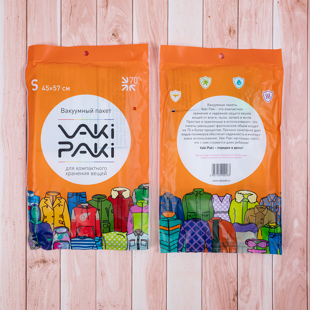 Область применения:Вакуумные пакеты размера S применяются для хранения вещей небольшого размера – курток, свитеров, маек, одеял, подушек, покрывал, детской одежды, сезонной одежды и других вещей. Объем пакетов уменьшается до 70% от первоначального. Предназначен для многоразового использования.