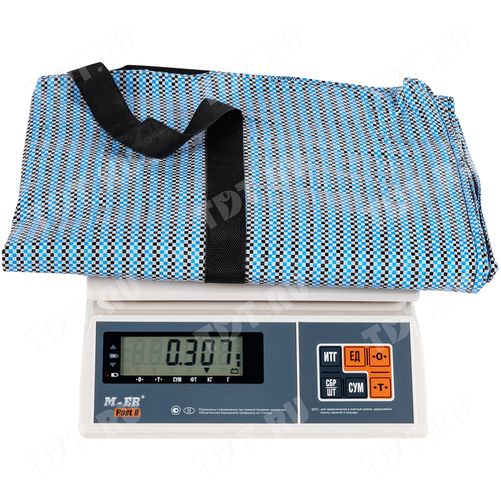 Сумка-баул двухслойная №60 (средняя) синего цвета длиной 72 см, шириной 42 см, высотой 56 см, грузоподъемностью 55 кг. Материал полипропилен. Занимает мало места в сложенном виде. Производится в России.