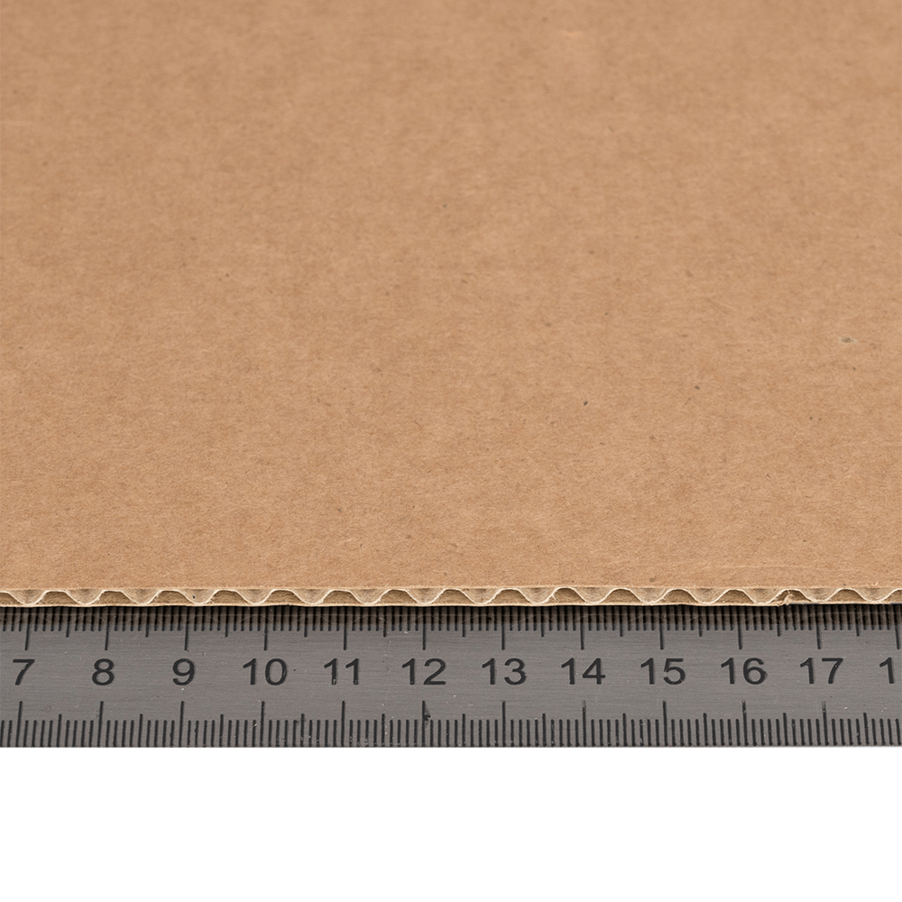 Трехслойный лист гофрокартона, бурого цвета, марки Т-24 В, длиной 1200 мм, шириной 800 мм, толщиной 2.5-3.2 мм, площадью 0.96 м², направление волны вдоль стороны 1200 мм. Для производства листов используется только первичное высококачественное сырье, плотность плоских листов – 160 г/м², плотность гофры – 140 гр./м². Производится в России.