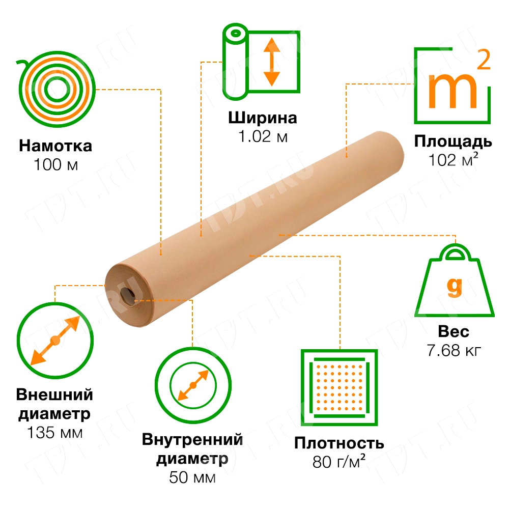 Вес рулона крафт бумаги 100*1.02м около 8 кг.