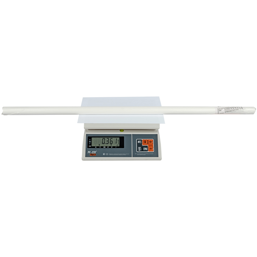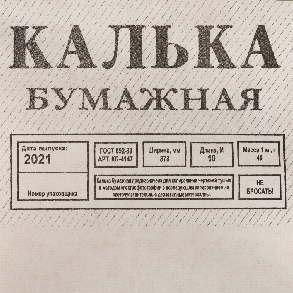 Бумажная калька в рулоне белого цвета, шириной 87 см, намоткой 10 м, плотностью 40 г/м². Производится в России.