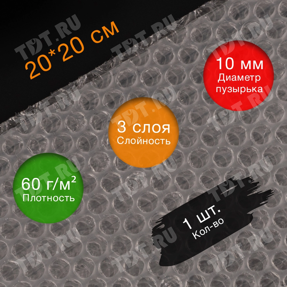 Прозрачный квадратный трехслойный воздушно-пузырчатый пакет Бета-Куверт, длиной 20 см, шириной 20 см, диаметром пузырька 10 мм, плотностью 60 г/м². Изготовлен из полиэтилена. Производится в России.
