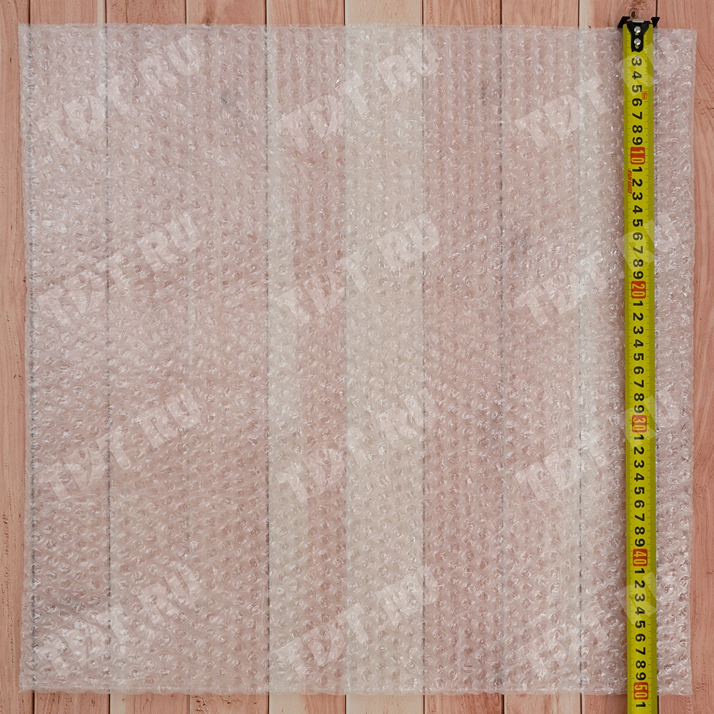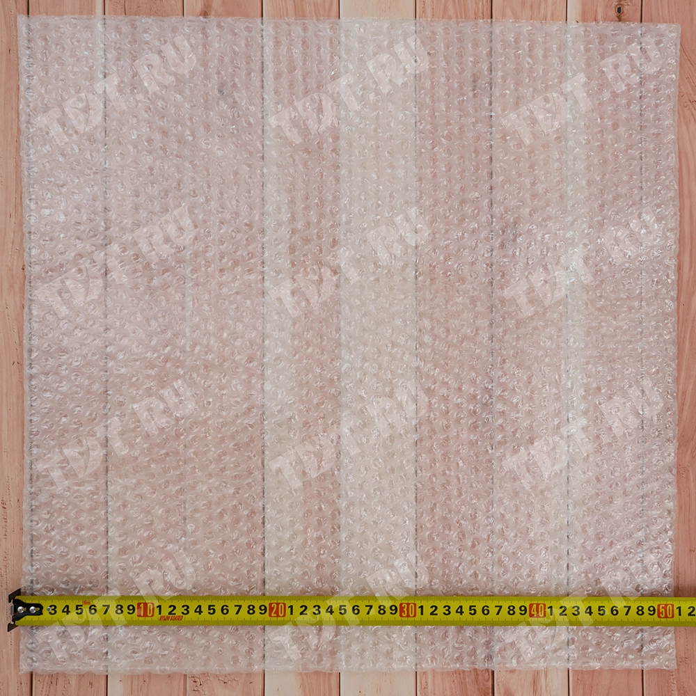 Прозрачный квадратный трехслойный воздушно-пузырчатый пакет Бета-Куверт, длиной 50 см, шириной 50 см, диаметром пузырька 10 мм, плотностью 60 г/м². Изготовлен из полиэтилена. Производится в России.
