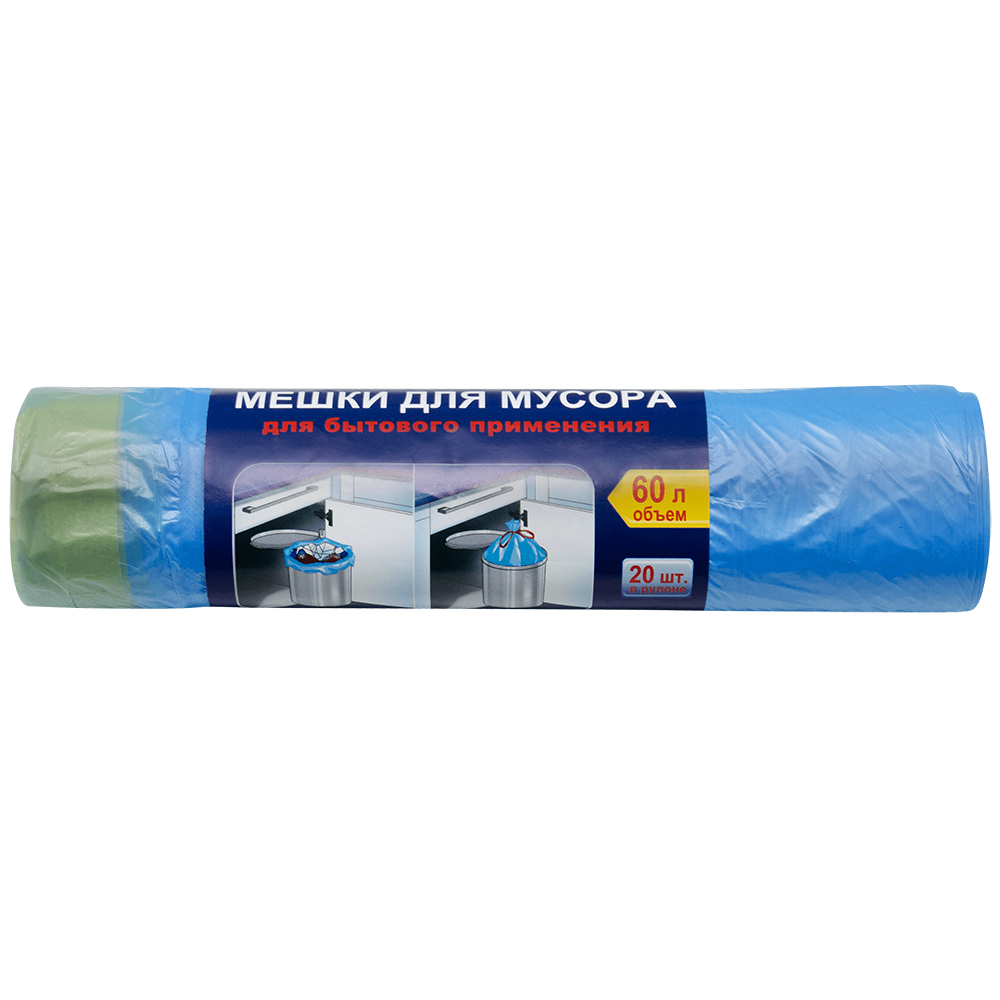 Мешки для мусора бытовые ПНД 60 литров с завязками, 60*70 см, 20 шт./рулон