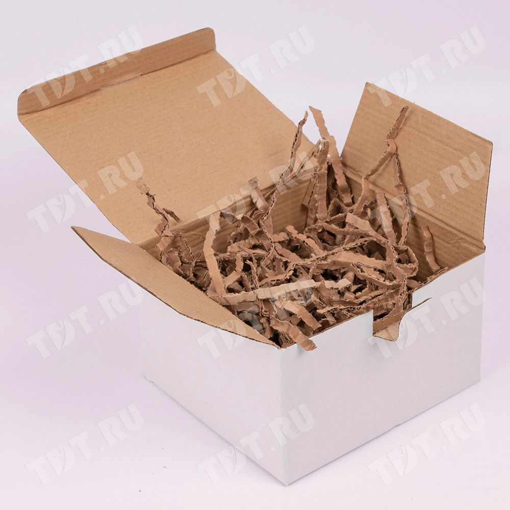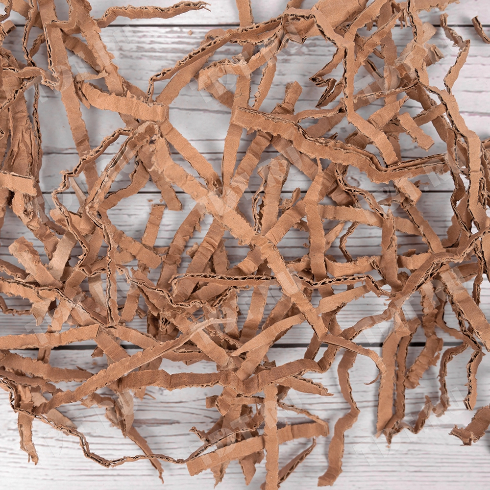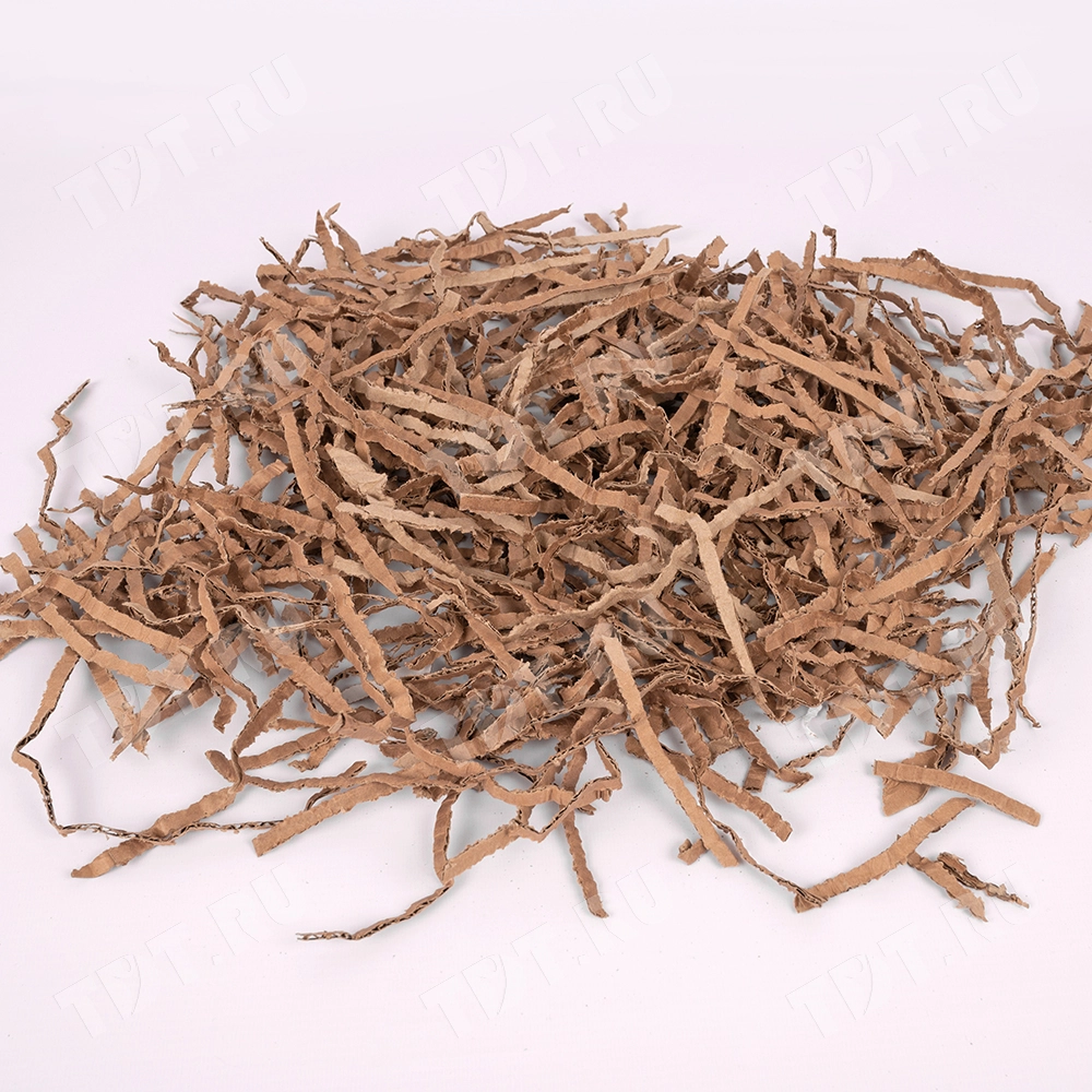 Наполнитель из трехслойного гофрокартона, бурого цвета, весом 3 кг, объемом 96 л. Ширина полосок 5-7 мм, толщина 2.5-3 мм. Поставляется в коробках размером 60*40*40 см. Производится в России.