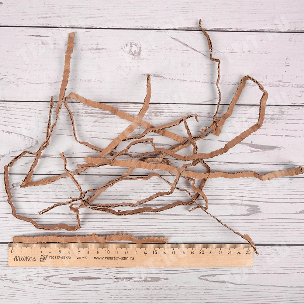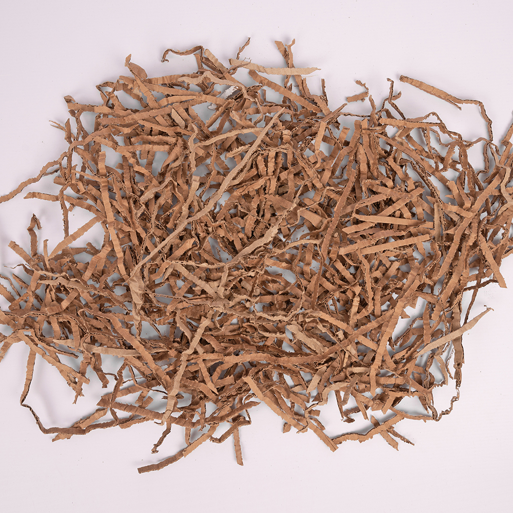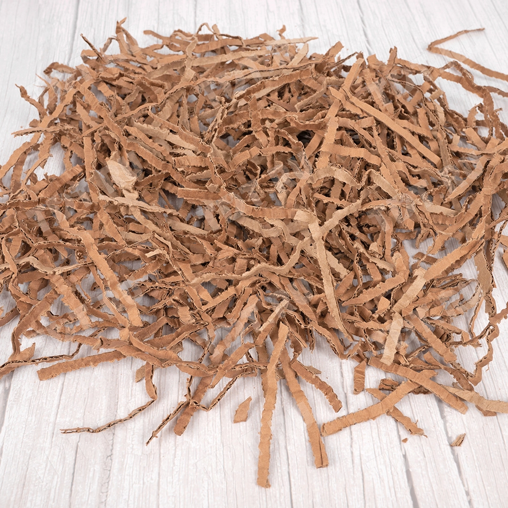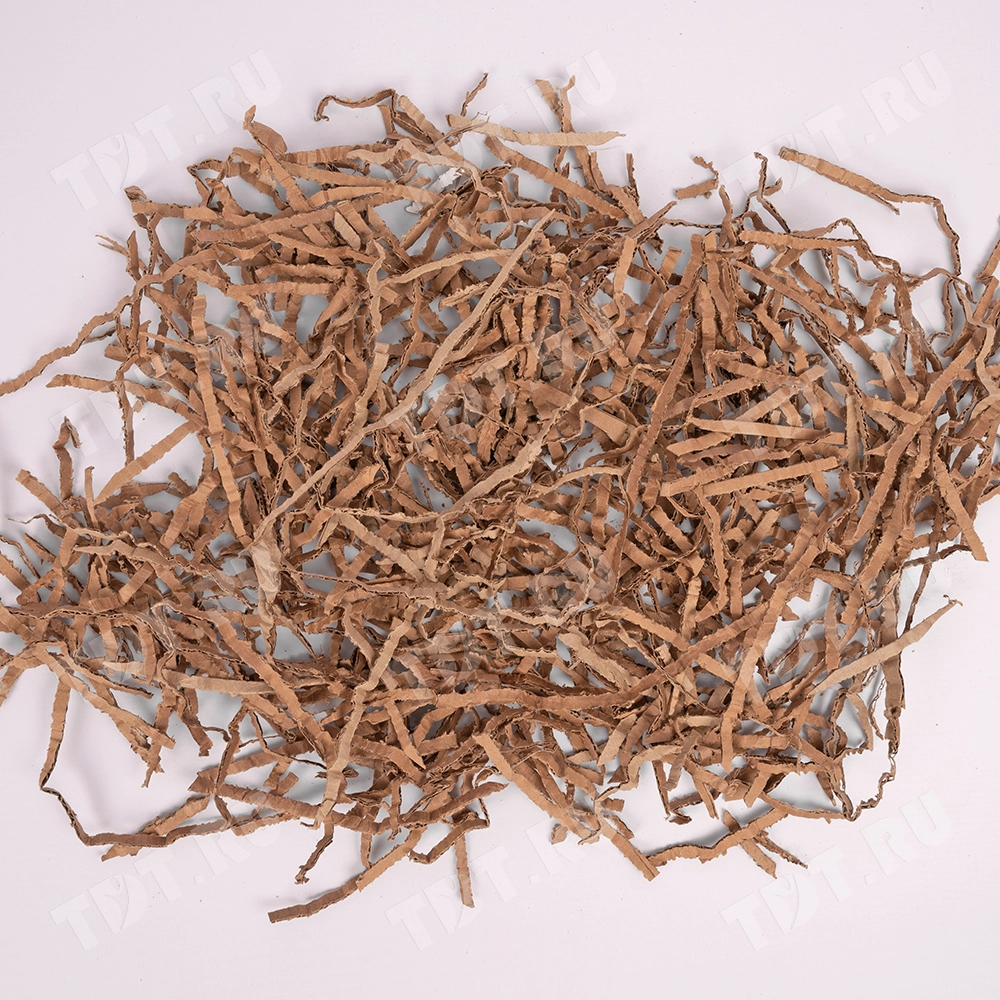 Наполнитель из трехслойного гофрокартона, бурого цвета, весом 3 кг, объемом 96 л. Ширина полосок 5-7 мм, толщина 2.5-3 мм. Поставляется в коробках размером 60*40*40 см. Производится в России.
