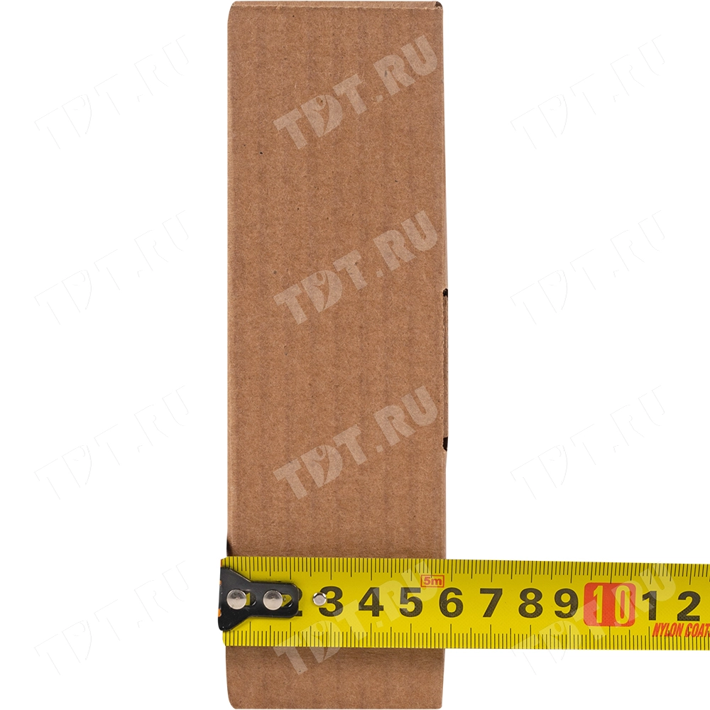Почтовый короб тип «Е» бурого цвета, длиной 270 мм, шириной 165 мм и высотой 50 мм. Изготовлен из трёхслойного гофрокартона Т-23 В. Полезный объём — 2.23 л.