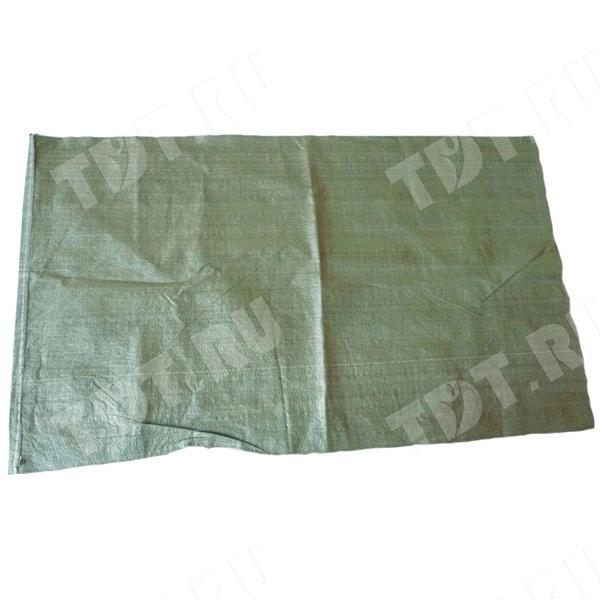 Полипропиленовый мешок, зеленого цвета, длиной 105 см, шириной 55 см, весом 54 г. Материал – полипропилен (ПП). Производится в России.