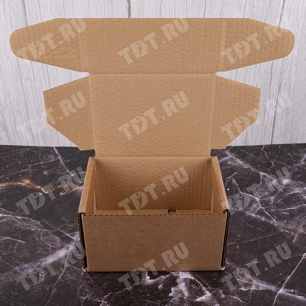 Почтовый короб тип «Ж» 1-й Класс, бурого цвета, длиной 170 мм, шириной 120 мм и высотой 100 мм. Изготовлен из трёхслойного гофрокартона Т-23 В. Полезный объём — 2 л.