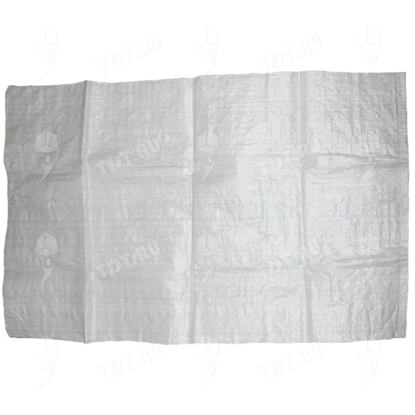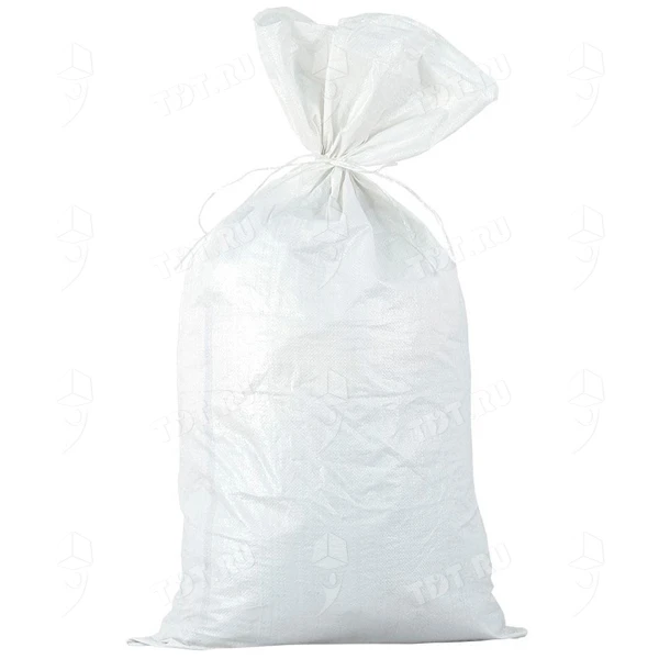 Полипропиленовый мешок, белого цвета, длиной 95 см, шириной 55 см, весом 58 г. Материал – полипропилен (ПП). Производится в России.