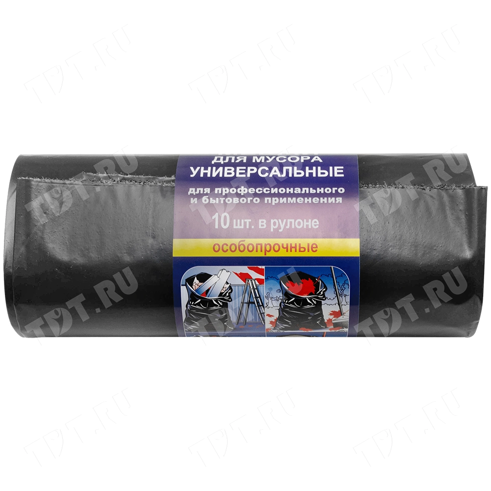 Мешки для мусора универсальные пакеты ПВД 220 литров, 90*130 см, 10 шт./рулон