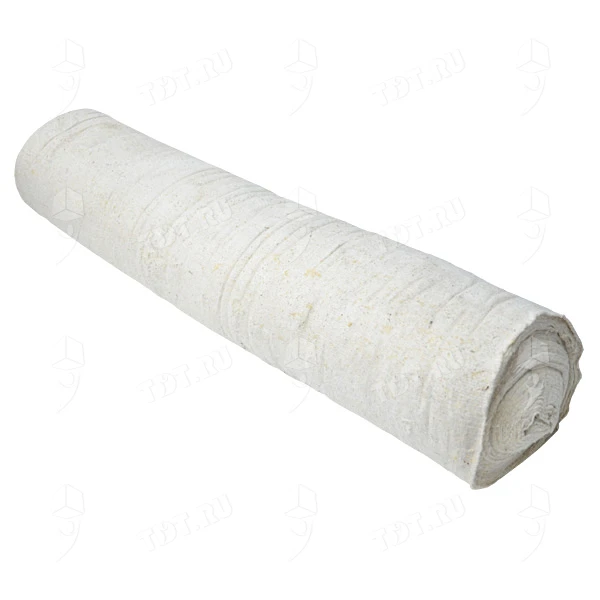 Нетканое холстопрошивное полотно (ХПП), белого цвета, намоткой 50 см, шириной 1.5 м, плотностью 195 г/м², весом 13.5 кг. Производится в России.