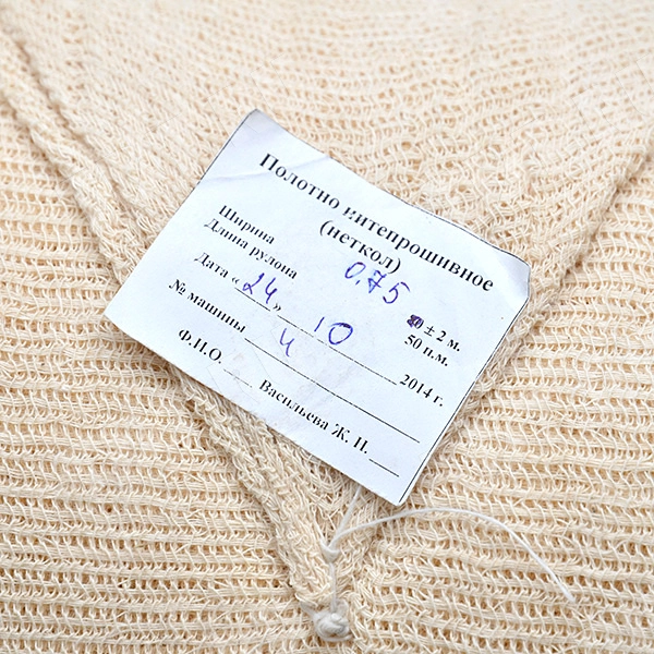 Неткол (нитепрошивное полотно), намоткой 50 см, шириной 78 см, плотностью 120 г/м², весом 4.14 кг. Производится в России.