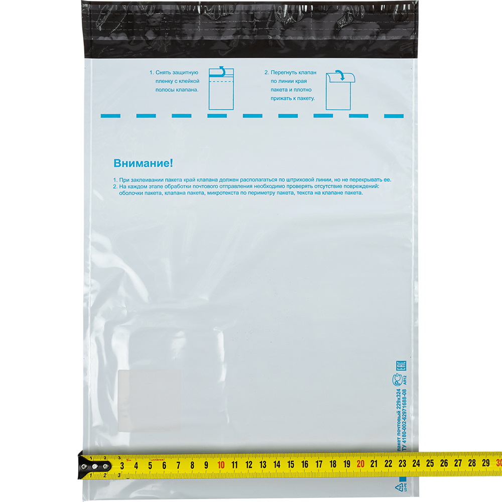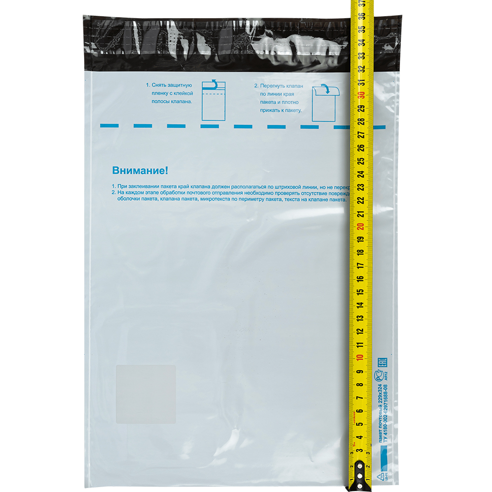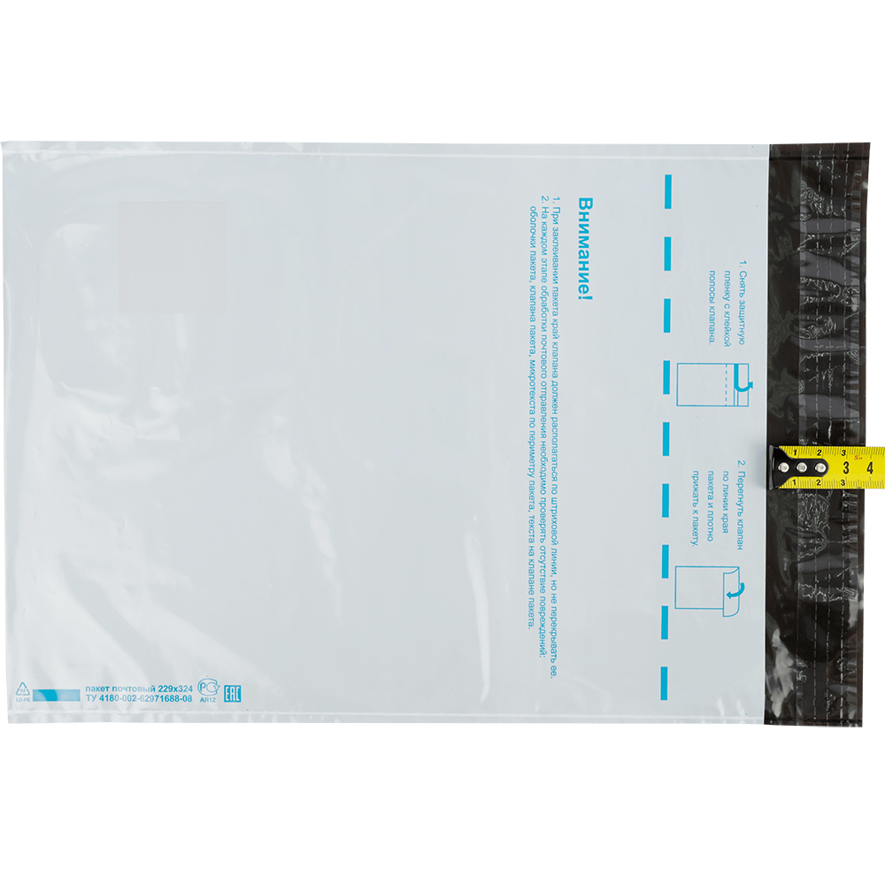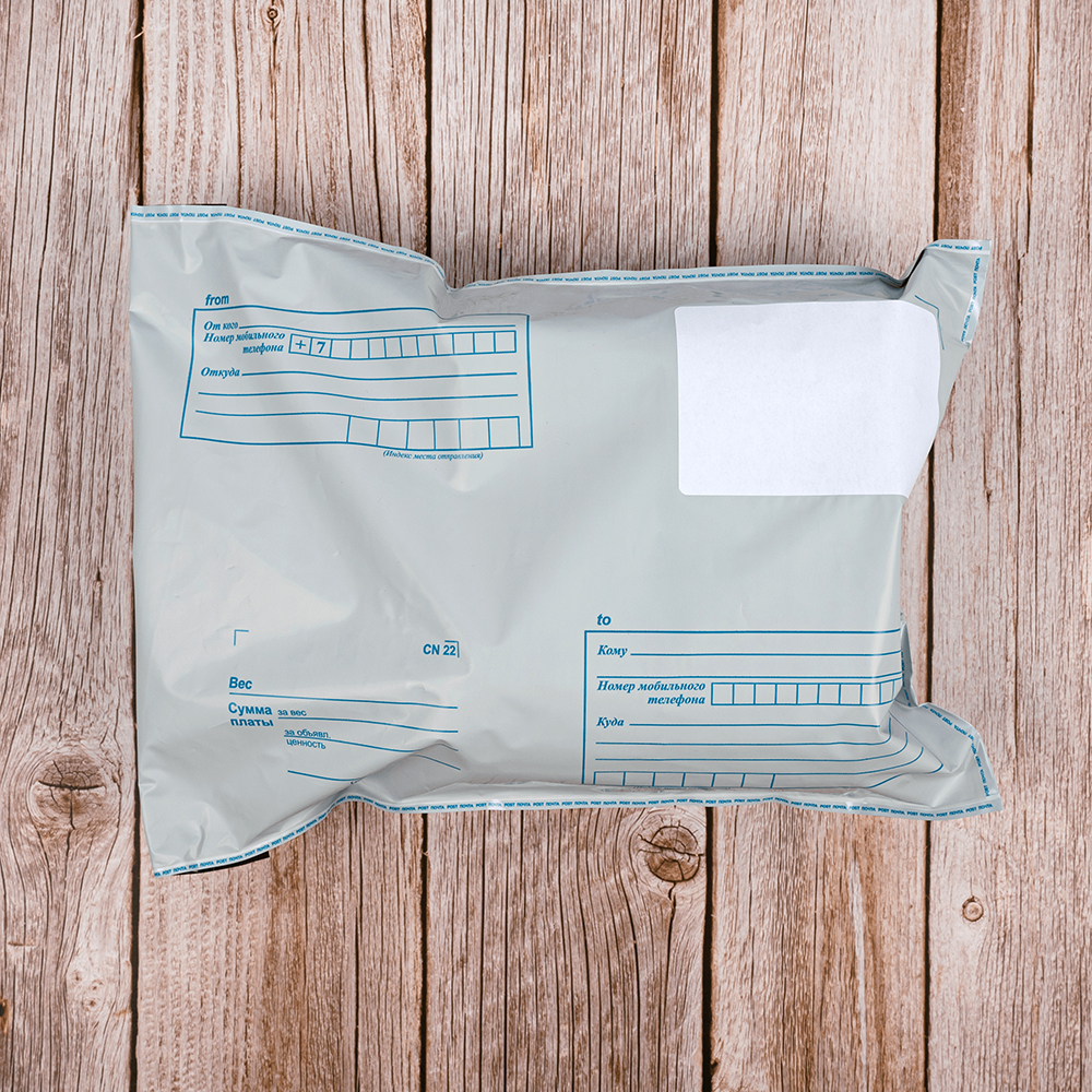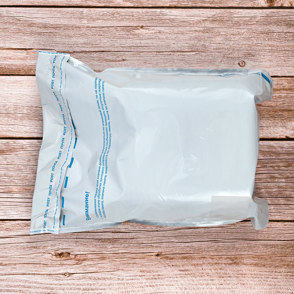Почтовый пакет изготовлен из высокопрочного пятислойного полиэтилена.