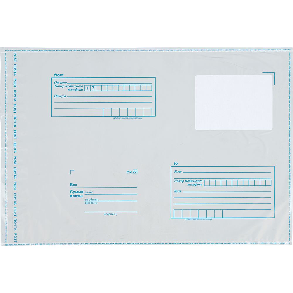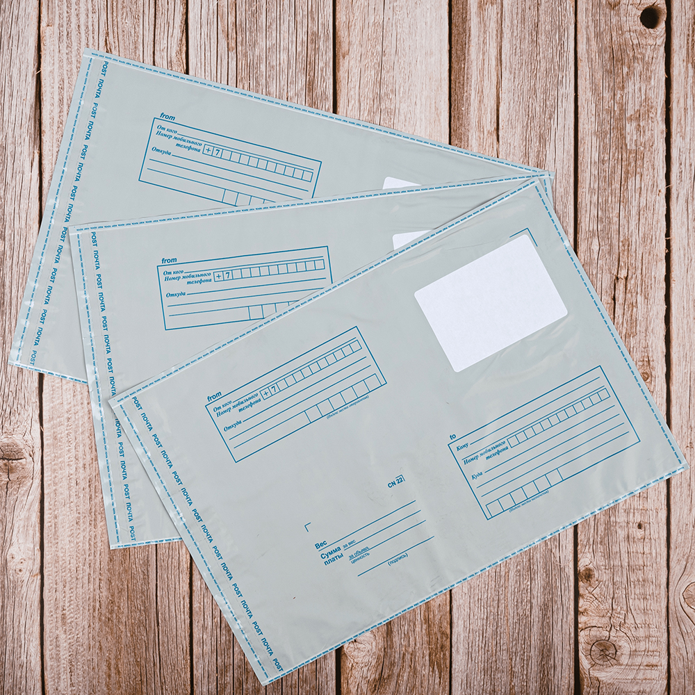 Практичный пакет для Почты России из пластика подойдет для посылки почтовых отправления среднего размера. Конверт более прочен по сравнению с бумажным, то есть в него можно положить больше почтовых отправлений (открыток, документов).