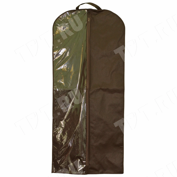 Чехлы для одежды 2D с молнией, одной ручкой, коричневого цвета, длиной 60 см, высотой 140 см, плотностью 70 г/м², весом 162 г. Материал – нетканый материал спанбонд. Производятся в России.