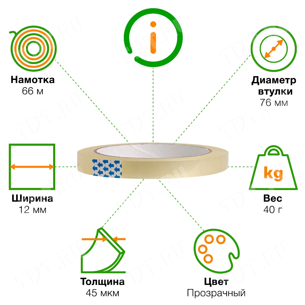 Прозрачная липкая лента для обвязки пакетов, 12мм*66м
