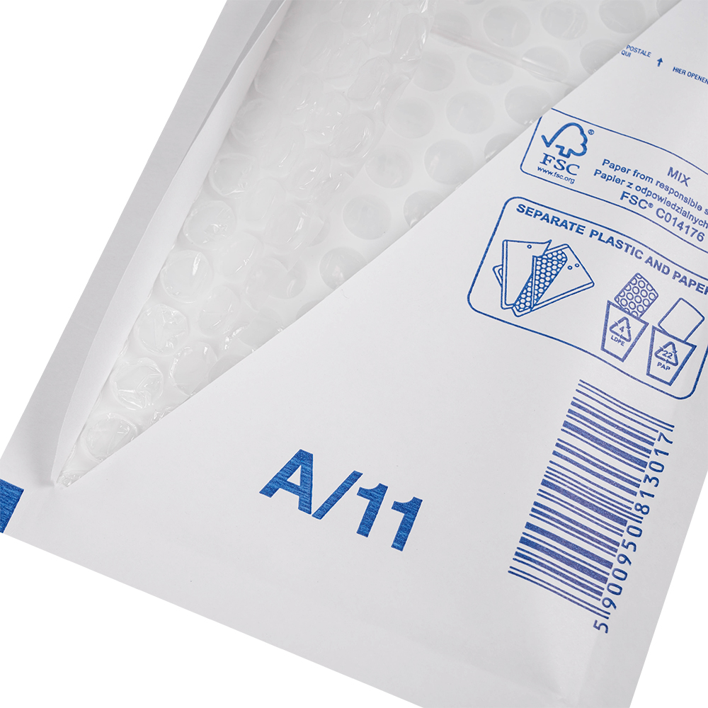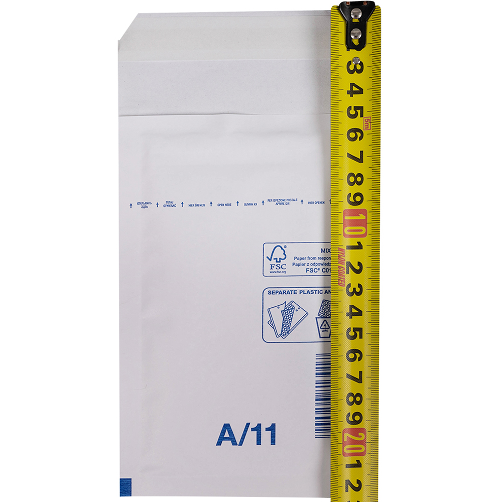 Белый крафт-пакет с воздушной прослойкой шириной 12 см и длиной 17 см. Внутренние размеры - 10*16 см. Изготовлен из крафт-бумаги и полиэтилена (внутренняя вставка). Производится в России.
