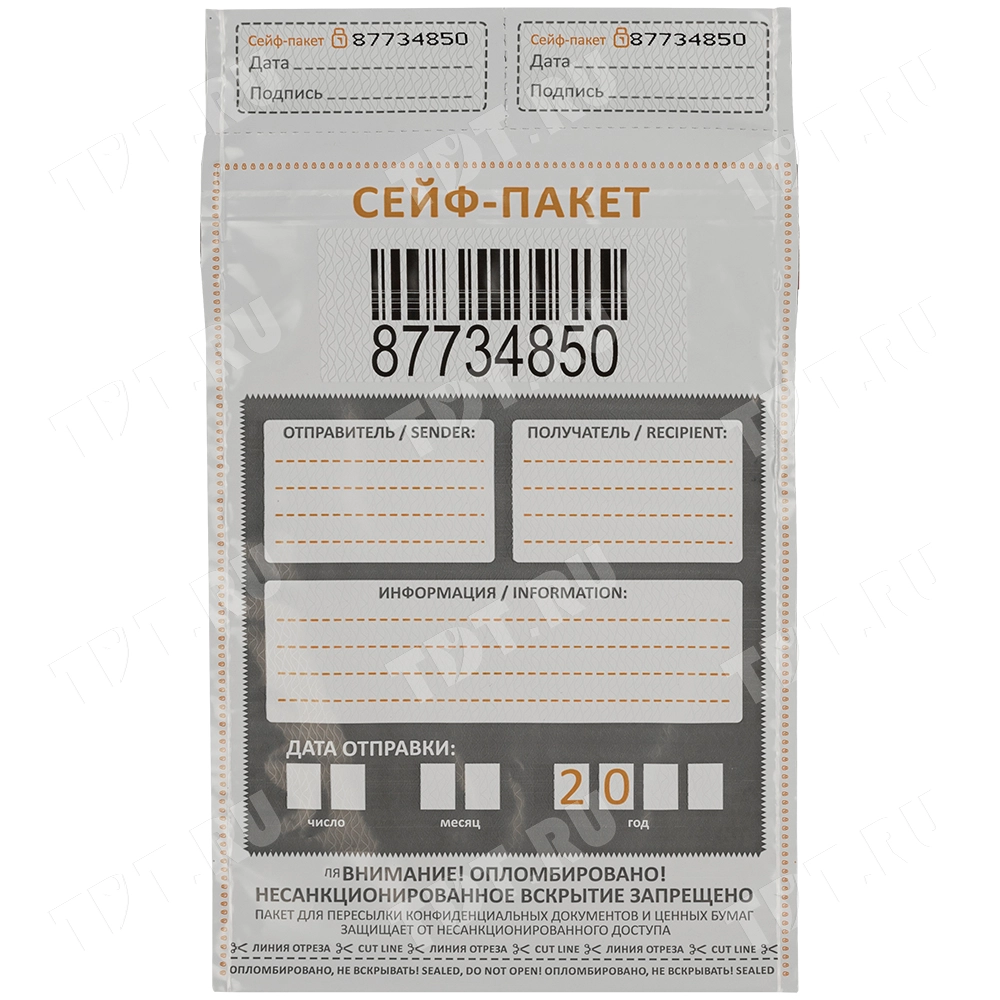 После заклеивания пакет нельзя вскрыть без появления следов проникновения. Фактически, это говорящий пакет, который сам расскажет вам, если в него кто-то заглядывал.