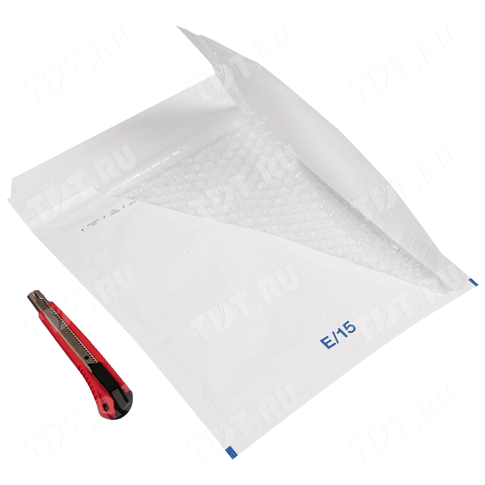 Белый крафт-пакет с воздушной прослойкой шириной 24 см и длиной 27 см. Внутренние размеры - 22*26 см. Изготовлен из крафт-бумаги и полиэтилена (внутренняя вставка). Производится в России.