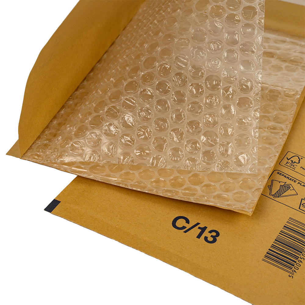 Внутри пакета воздушно пузырьковая пленка, "обшитая" снаружи крафт бумагой.