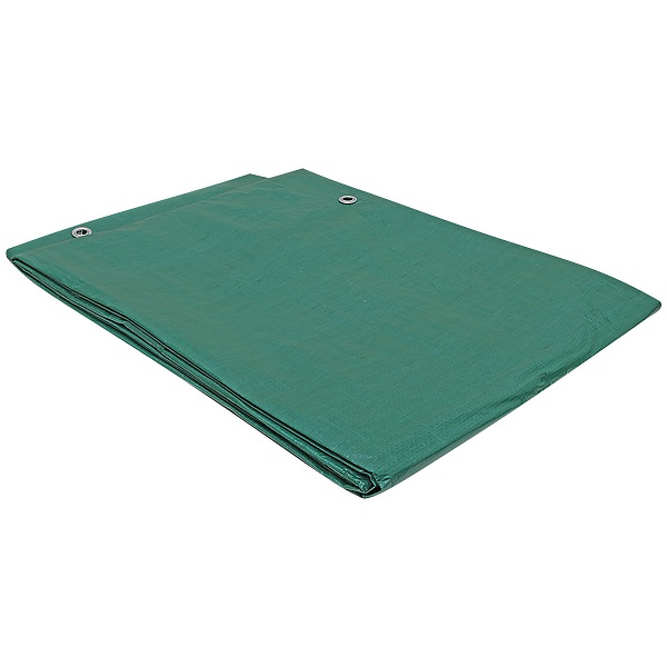 Большой зеленый защитный тент «Тарпаулин®» с люверсами из особо прочной полиэтиленовой ткани длиной 8 м, шириной 6 м, площадью 48 м², плотностью 120 г/м². Производится в России.