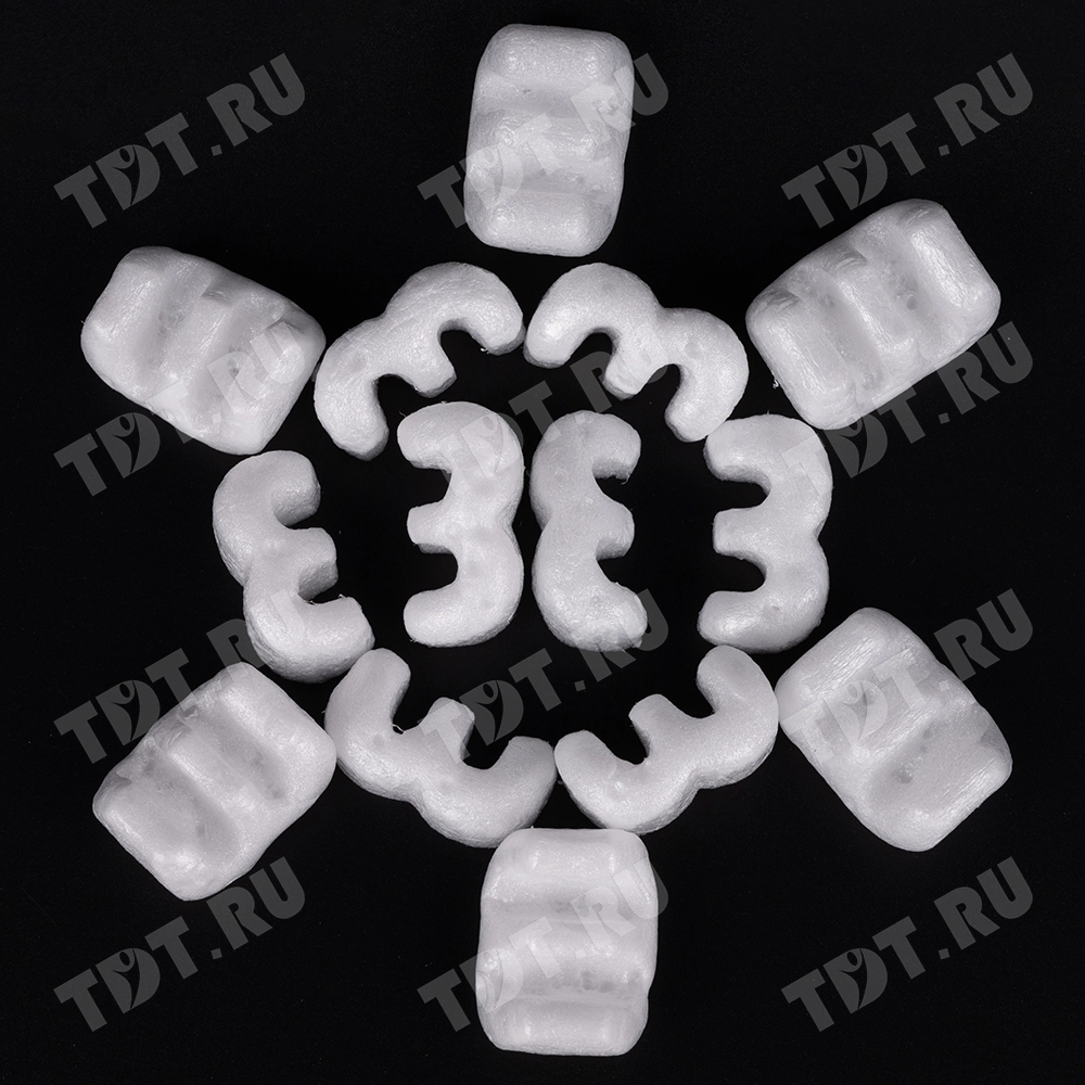Пенопластовый наполнитель W-формы экономичен в использовании за счет специальной формы крупных гранул в виде цифры 3. Данный тип гранулирования позволяет использовать меньшее количество на тот же объем упаковки в сравнении с обычными видами.