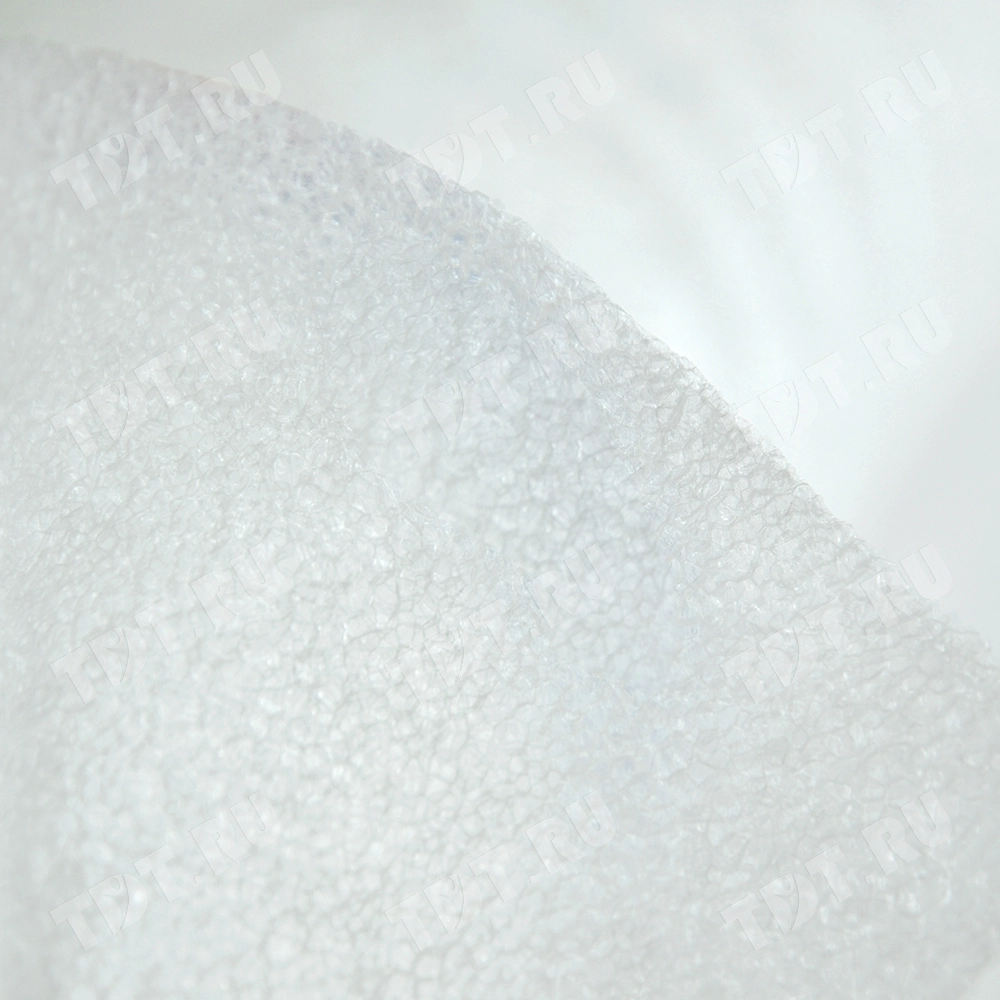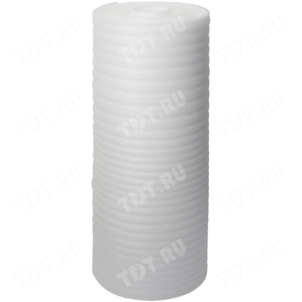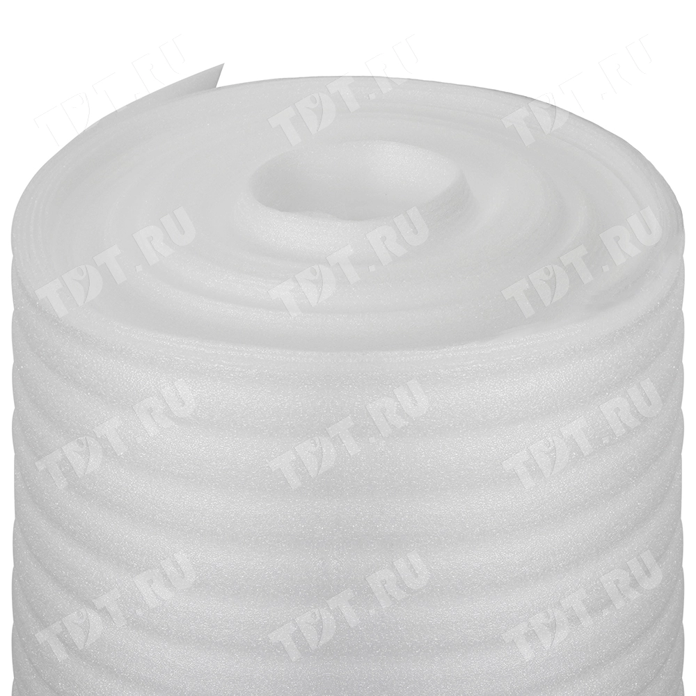 Вспененный полиэтилен, белого цвета, намоткой 50 м, толщиной 3 мм, шириной 1.05 м, весом 3.95 кг, площадью 52.5 м². Рабочий диапазон температур для вспененного полиэтилена от -60 до +100 °С. Производится в России.