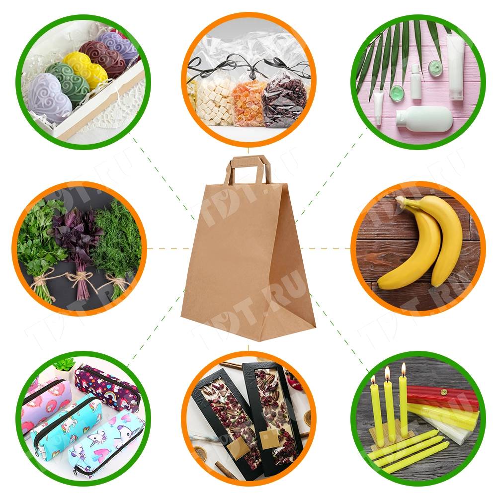 Крафт пакет отлично держит форму, дно и боковины качественно склеены.