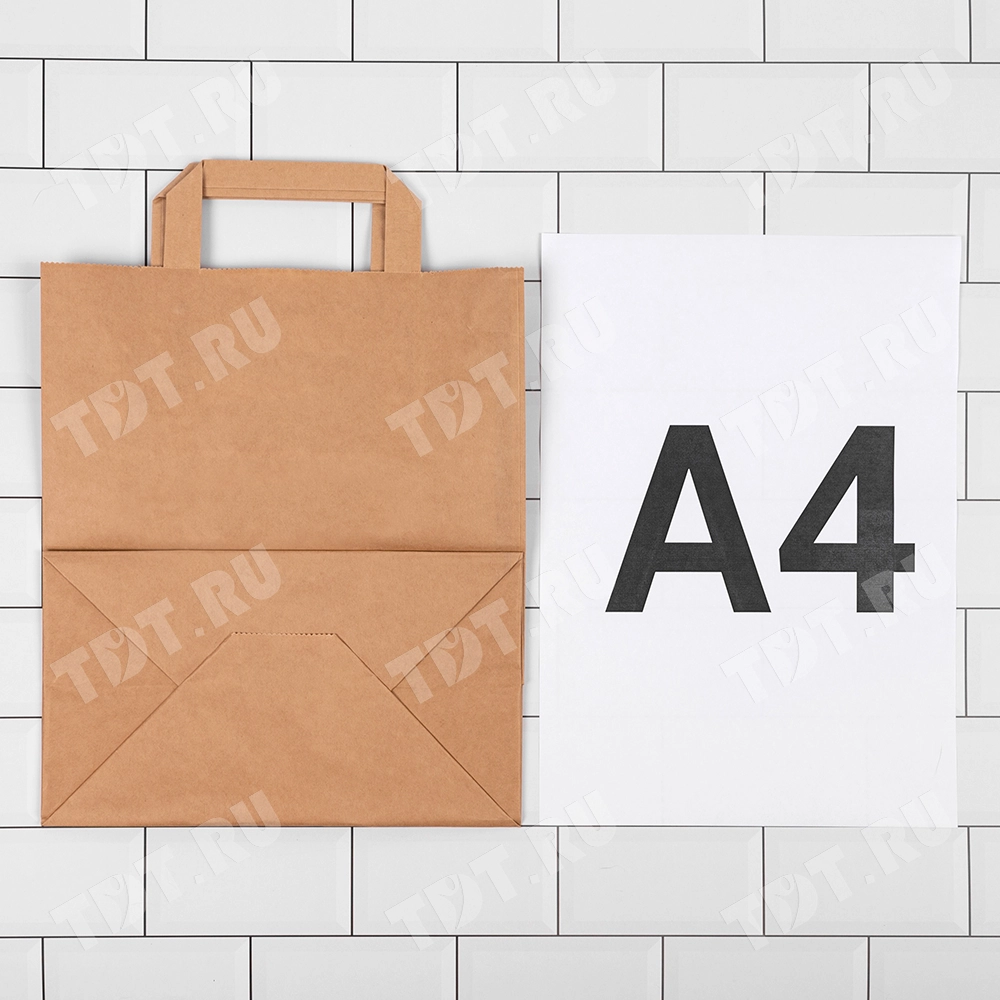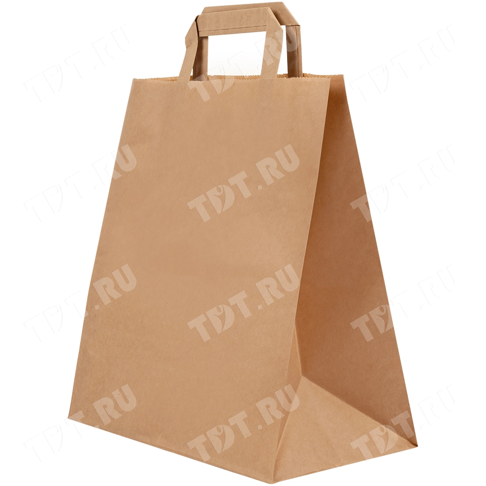 Крафт пакет с плоской ручкой, 70 г/м², 24*14*28 см