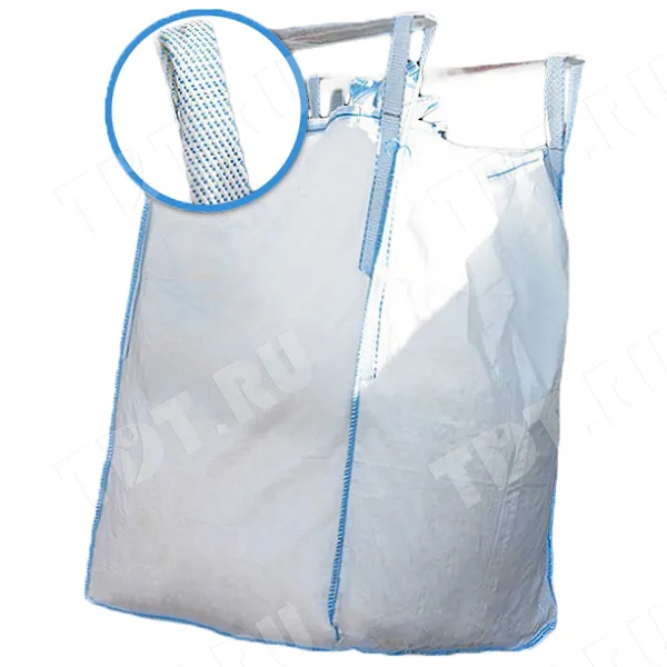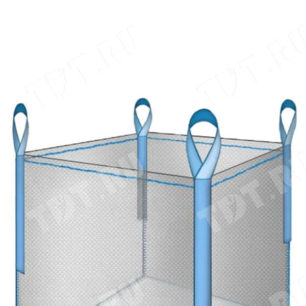 Четырехстропный биг-бэг мешок, глухой низ/открытый верх, длиной 95 см, шириной 95 см, высотой 130 см, грузоподъемностью 1200 кг, весом 1.5 кг. Материал – полипропилен. Производится в России.