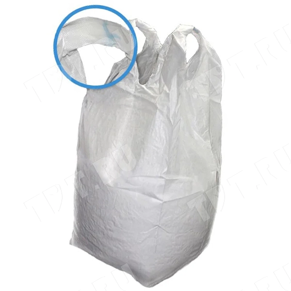Двухстропный биг-бэг мешок, глухой низ/открытый верх, длиной 75 см, шириной 75 см, высотой 150 см, грузоподъемностью 1000 кг, весом 950 г. Материал – полипропилен. Производится в России.