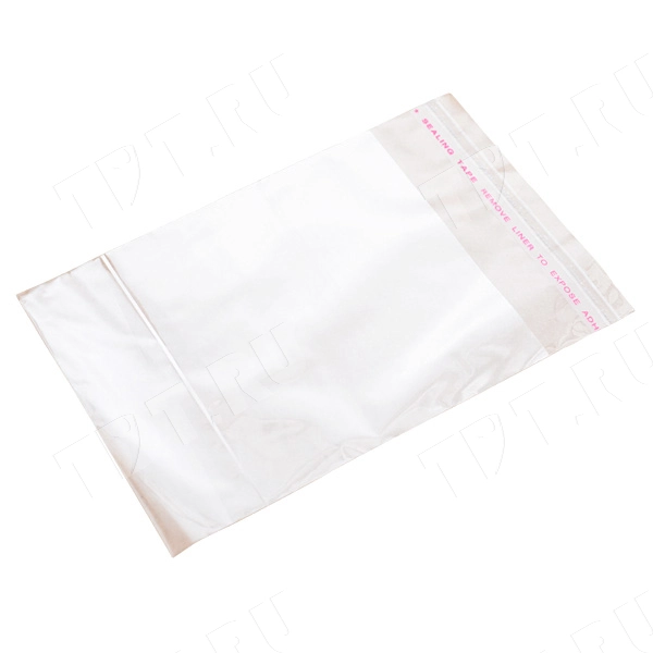 БОПП пакеты со скотчем, прозрачного цвета, длиной 15 см, шириной 12 см, толщиной 25 мкм, со стандартным клапаном 3 см, в упаковке по 100 штук. Материал – полипропилен. Производятся в России.
