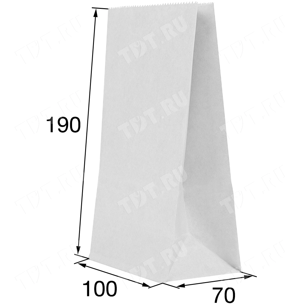 Белый бумажный пакет без ручек, 70 г/м², 10*7*19 см