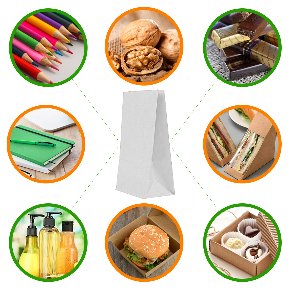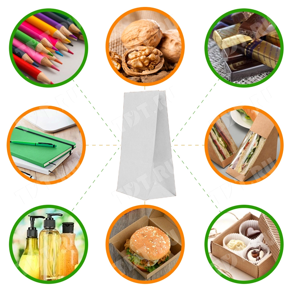 Белый бумажный пакет, 10*7*19 см хорошо подходит для пищевых (в том числе сухих) продуктов, такая упаковка способна сохранять необходимое количество влажности, помогая избегать отсыревания. При желании на бумажный пакет можно нанести логотип компании.