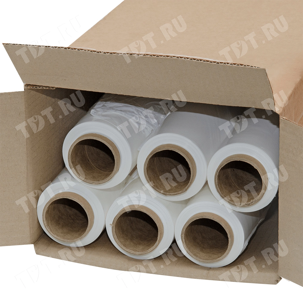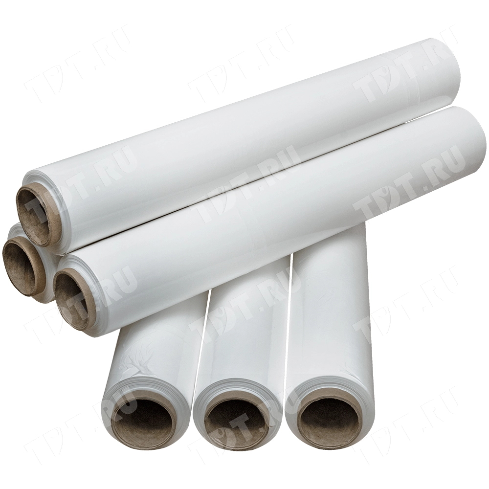 Белая стрейч-плёнка весом 1.2 кг, 500 мм в ширину и толщиной 20 мкм. Изготовлена из 100% первичных гранул LLDPE. Производится в России.