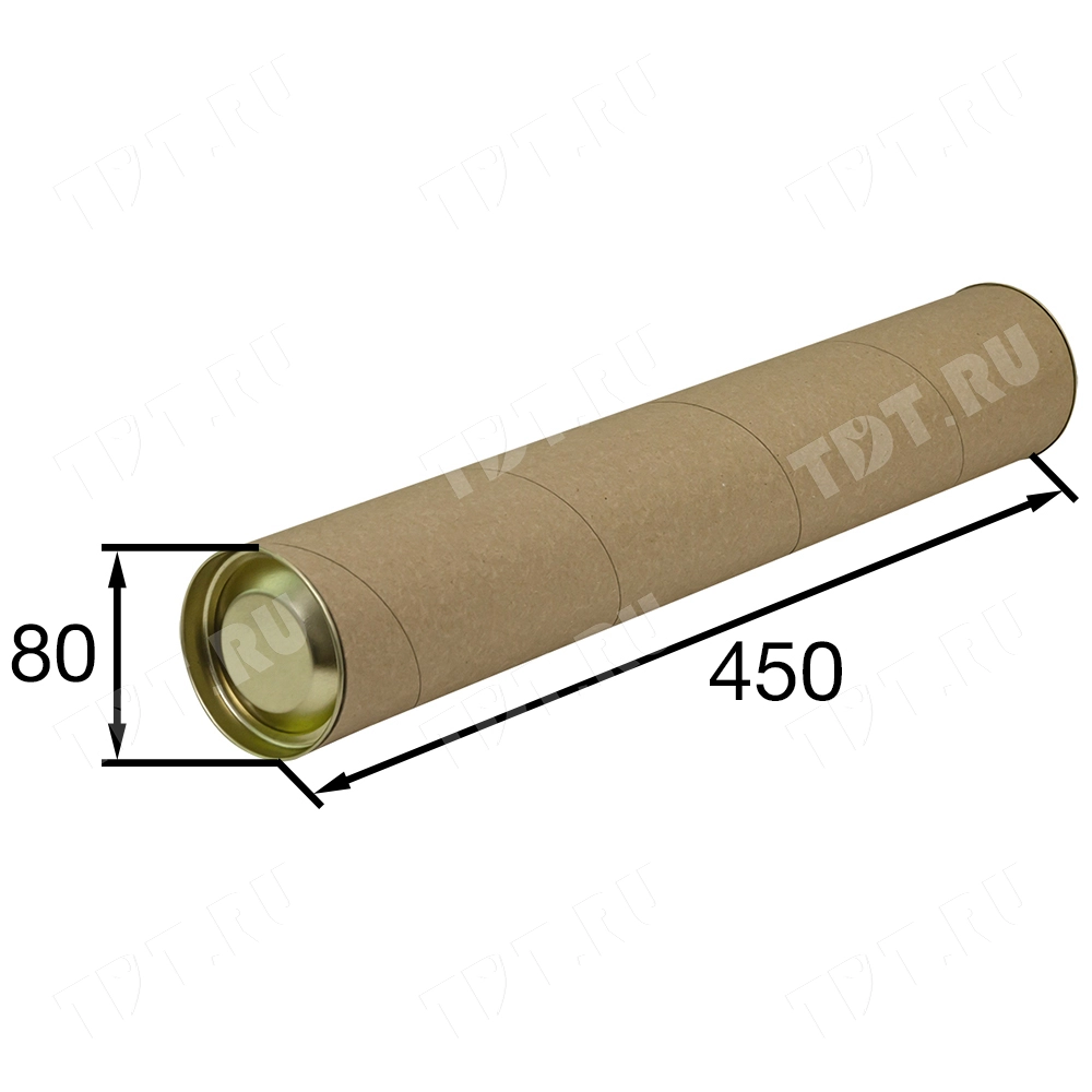 Картонный тубус с жестяной крышкой, 80*450 мм