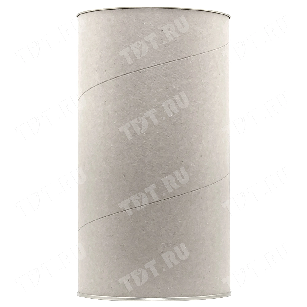 Картонный тубус с металлическими крышками с двух сторон, бурого или светло-серого цвета, диаметром 92 мм, высотой 160 мм, толщиной 1.2 мм, весом 115 г, транспортировочным объемом 0.00148 м³. Материал – прочный многослойный картон. Производится в России.
