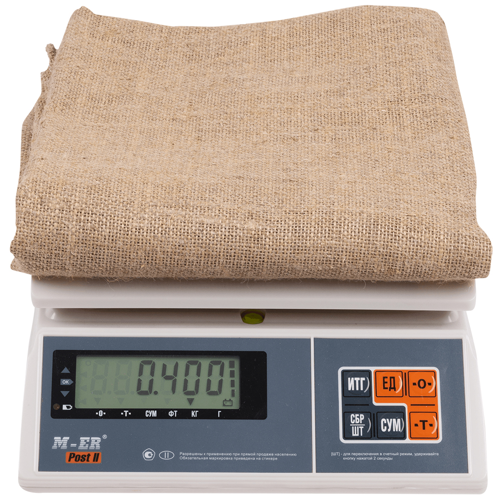 Льняной мешок, длиной 109 см, шириной 59 см, плотностью 420 г/м², весом 400 г. Изготовлен из 100% льна. Производится в России.