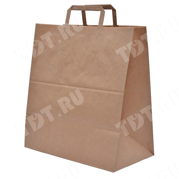 Крафт пакет с плоской ручкой, 80 г/м², 32*18*32 см