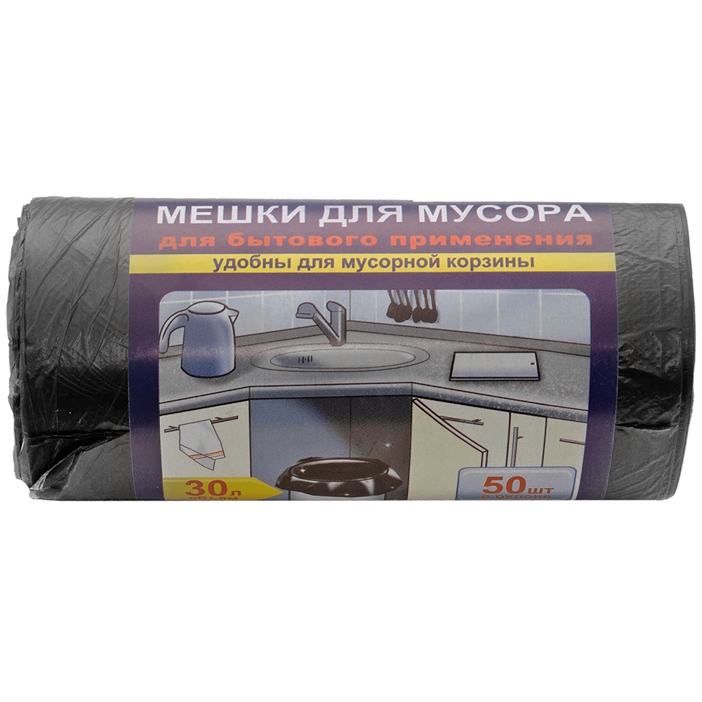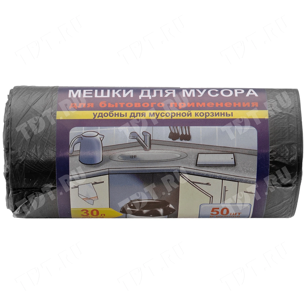 Мешки для мусора бытовые ПНД 30 литров, 50*60 см, 50 шт./рулон