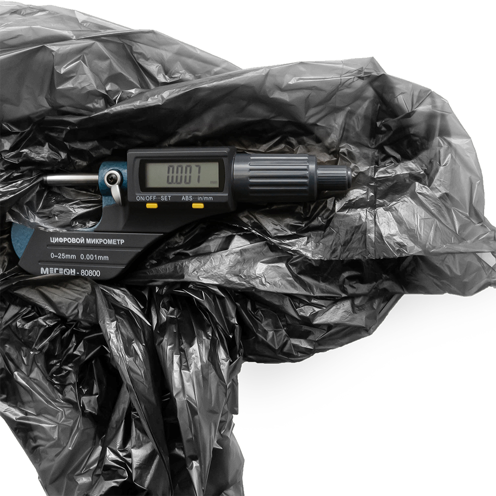 Толщина мешков – 7 мкм, подходит для нетяжелого бытового мусора.