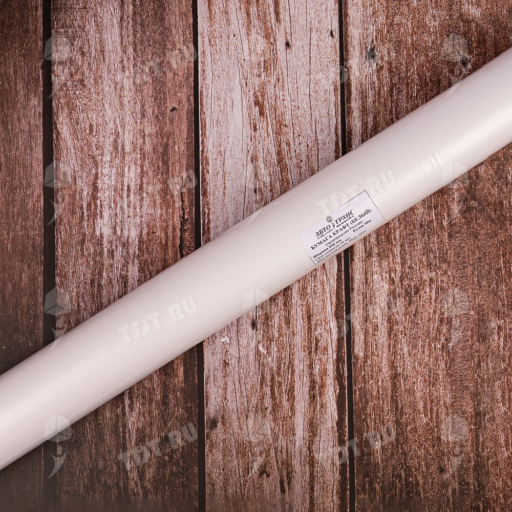 Оберточная крафт бумага в рулоне белого цвета, шириной 84 см, намоткой 30 м, плотностью 70 г/м². Экологически чистый упаковочный материал. Производится в России.