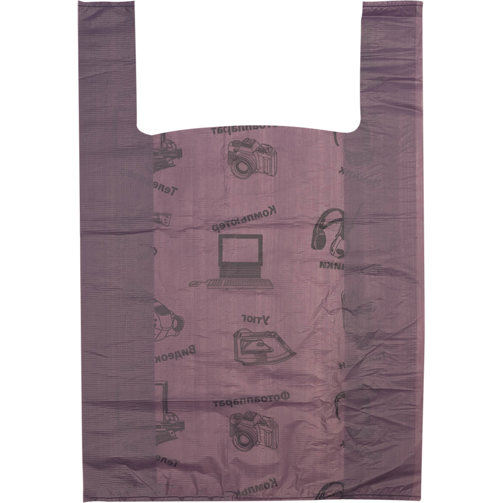 Пакет майка ПНД «Электроника» фиолетовый, 36+20*56см, 15 мкм, 50шт.