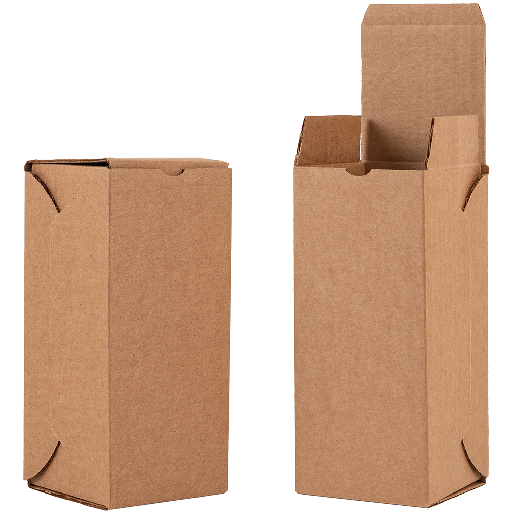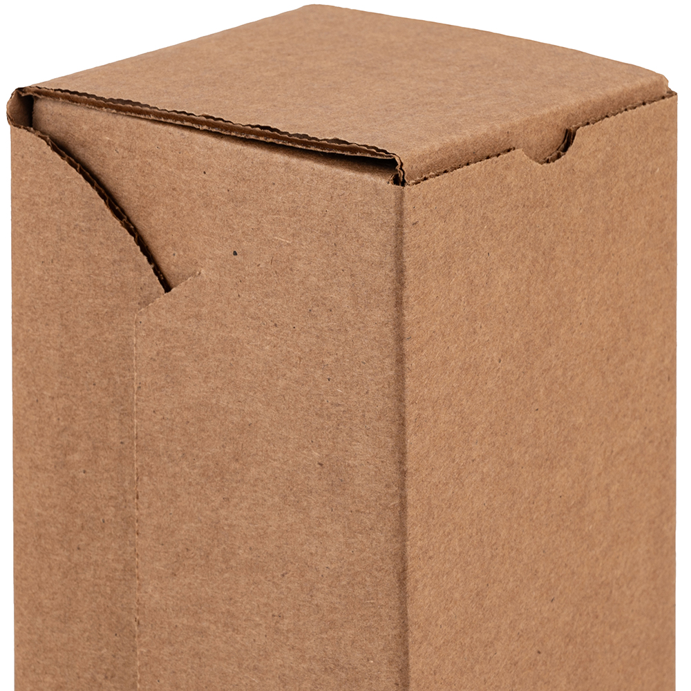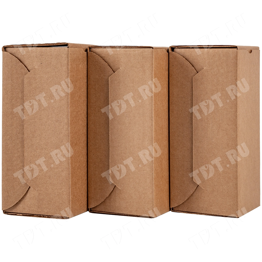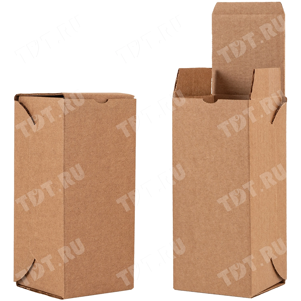 Коробка для бутылки №97, бурая, длиной 90 мм, шириной 90 мм и высотой 200 мм. Изготовлена из трёхслойного картона Т-23. Полезный объём — 1.62 л.